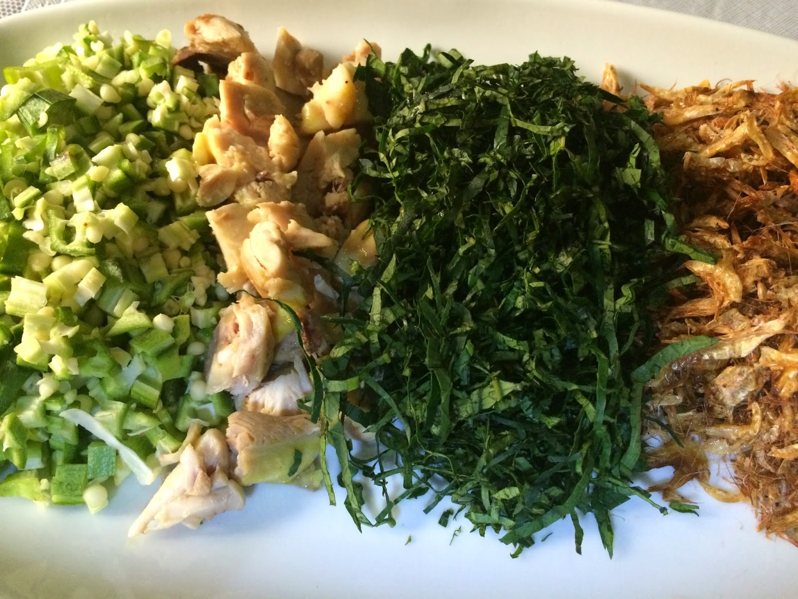 A handful of vegetable (pumpkin leaves), trimmed and chopped