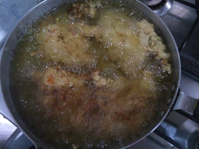 #Tip 5 The frying: Pour clean vegetable oil into a frying pan. The oil should be 3/4 of the frying pan and set to heat. It must be very hot and the heat reduced when the akara is inserted into the oil using a cooking spoon.
