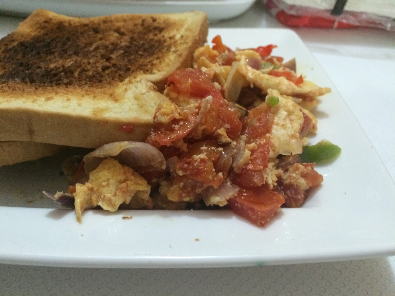 I had toasts and egg sauce for breakfast. I have not eaten this in a long time and so, I think I am entitled to eat. The trick with this especially for weight watchers is to fry with low fat oil, fry the egg first and then add the vegetables last. Vegetables should not be left to overcook. You can substitute white bread for wheat or brown bread. Roasted Irish potatoes could do the trick too.