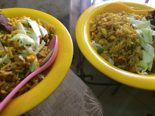 Sunday lunch was rice with  fresh vegetables straight from my kitchen. It was so delicious and I got the whole family licking their fingers. I thought the kids would abandon the food because of the vegetables but they didn’t. They enjoyed the meal and asked for some for school lunch. I am so lucky and blessed because I think next time, I will just cook grass and serve. Lol