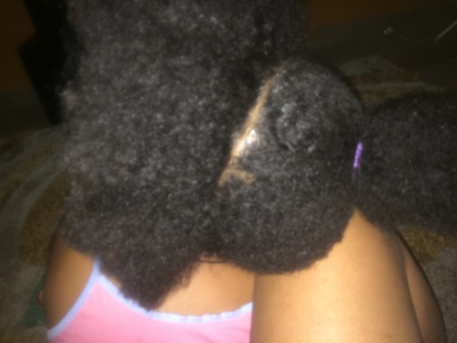 I had to plait TY’s hair for the week.  Her hair was really dry because of the harmattan and so, I had to moisture with water, shea butter and coconut oil just to get it shiny and softer.