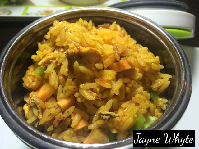 Today, I want to share a recipe and also, give you an idea of what a simple lunch for a school child should look like. My kids looooove coconut rice and they could finish a pot of coconut jollof rice in a jiffy and there would be no leftovers. The trick is that it tastes better than the conventional jollof rice and the chopped vegetables (carrots, sweet corn) gives it that special taste and flavor.