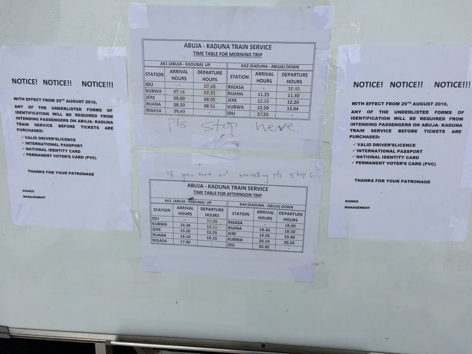 I had to take a photo of the schedule. Just incase you plan to travel, this should help you plan better.