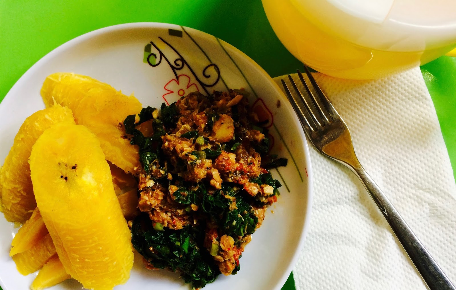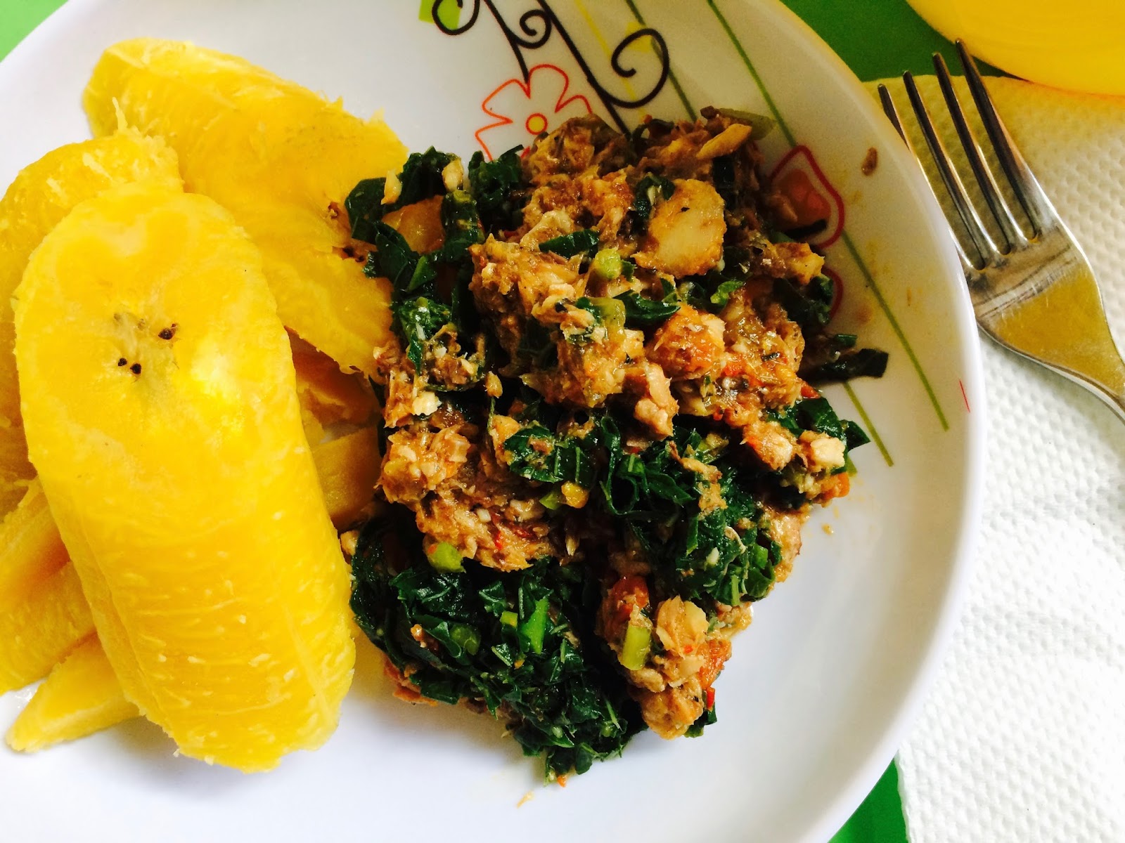 1. Put the cleaned plantain in a steam cooker and steam for about 20 minutes. We want to preserve as much nutrients as we can so steam the plantains with the outer coverings (bark) and peel after steaming.