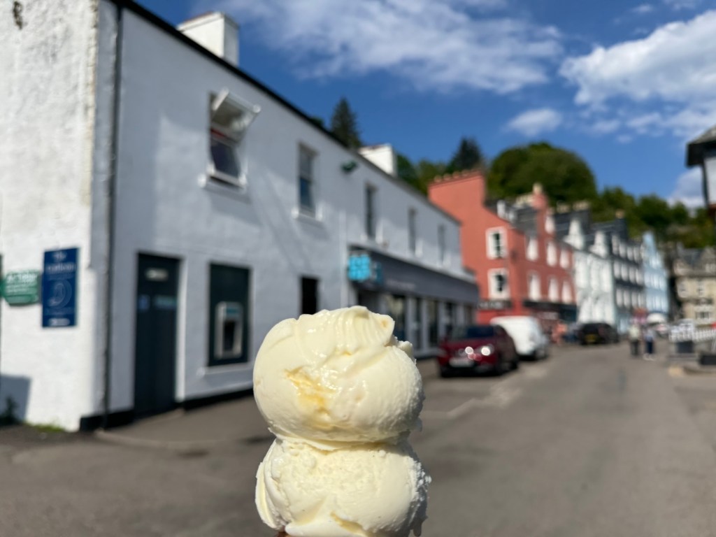 The sun was scorching and I thought I wouldn’t mind an ice-cream. I opted for a whisky and vanilla flavoured ice cream and it was a perfect way to end my stay in Tobermory. Back to the Isle of Mull by bus and then the ferry to Oban.
