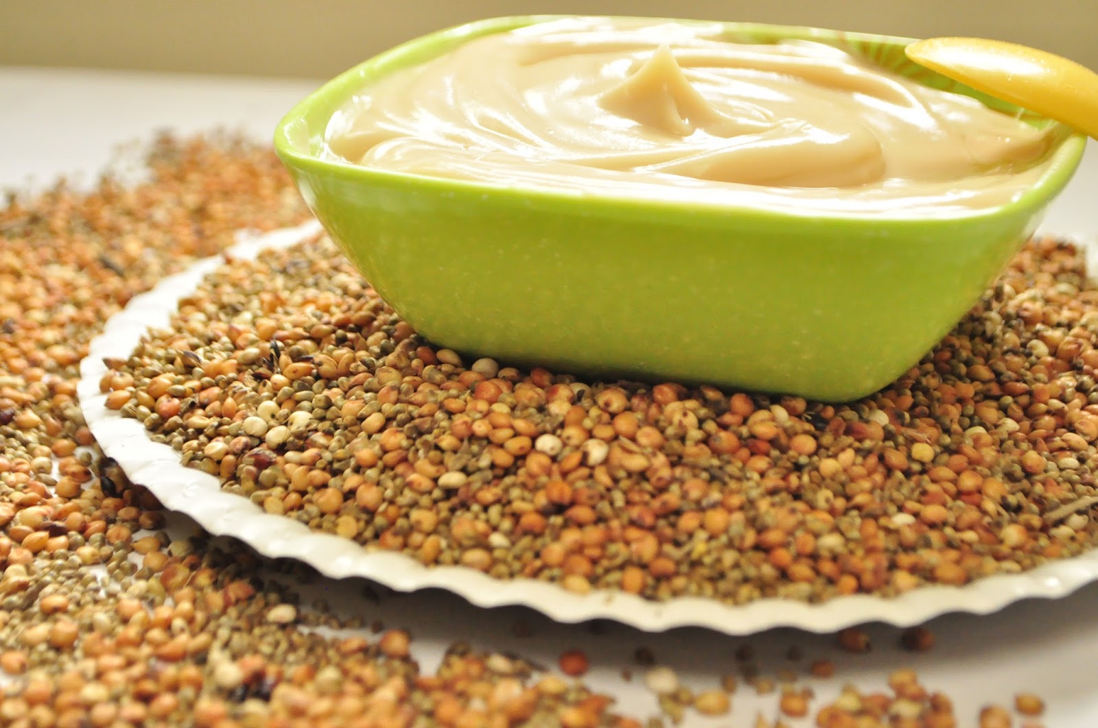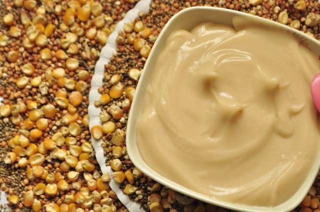 Locally made yellow corn and guinea corn cereal. See recipe here