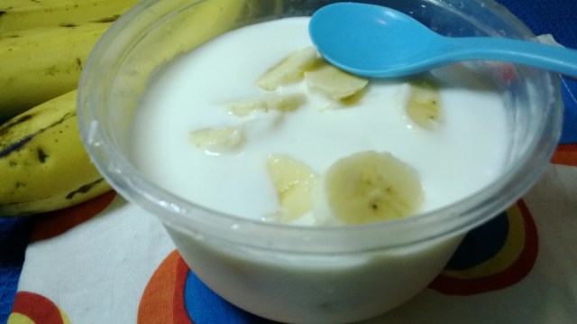 Bananas can be mashed and mixed with the milk. Alternatively, yoghurt can be a substitute for milk. Yummmyyy!