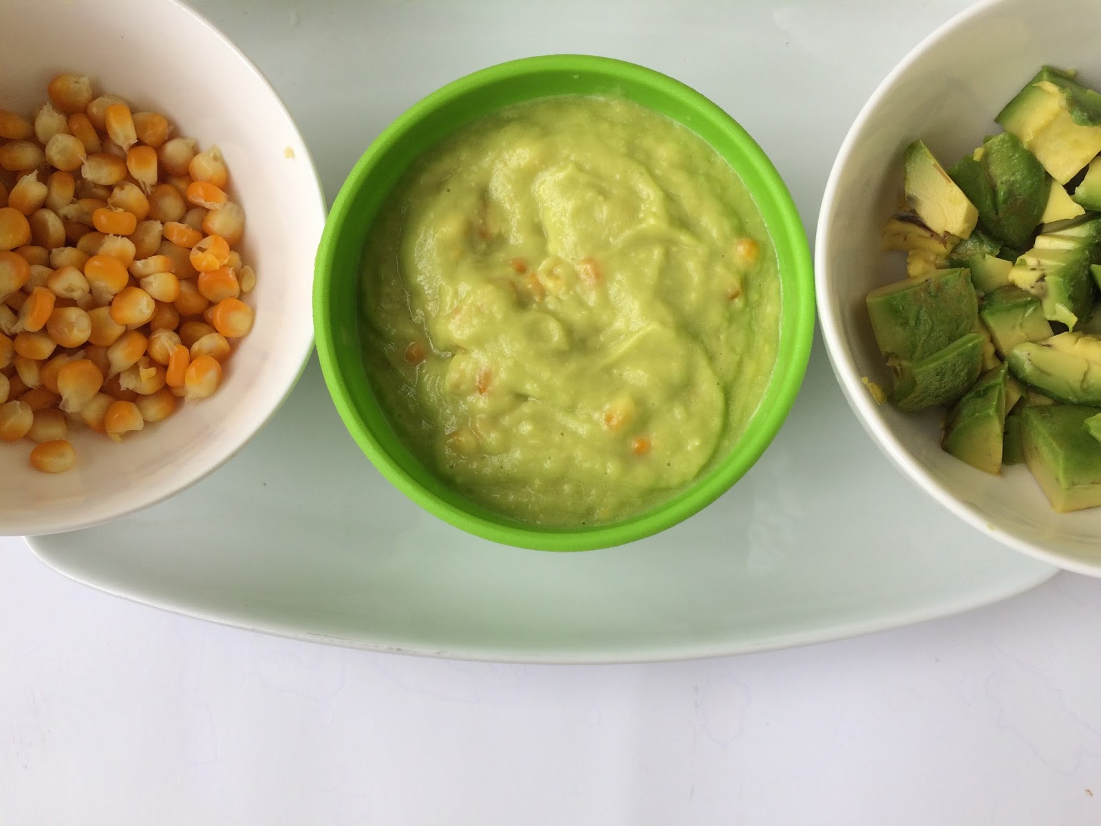 Boiled corn and avocado puree Macaroni and vegetable curry sauce with diced beef Freshly boiled ripe plantain with spinach and tomato and beef stew. This meal is great for kids. Plantain could be diced into smaller sizes for the little ones. Yummy and delicious.
